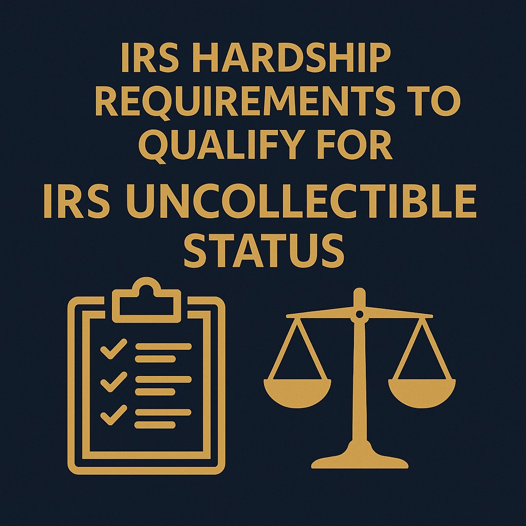 Millions of taxpayers struggle to pay their IRS bills every year, but IRS hardship requirements offer a way for those in genuine financial distress to qualify for “Currently Not Collectible” (CNC) status—temporarily halting all collection efforts. This guide explains the requirements and steps to help you seek uncollectible status if paying your tax debt would push you into hardship.