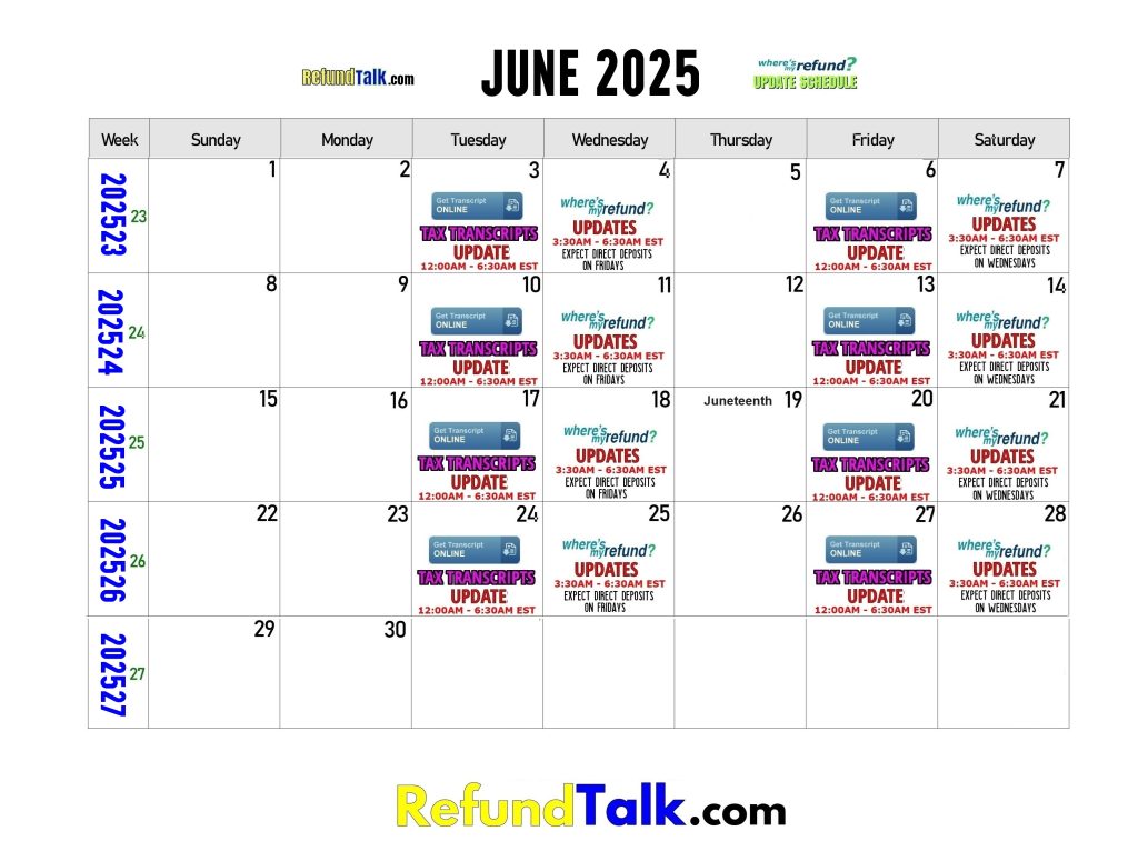 Where’s my Refund? Updates Calendar for 2025
