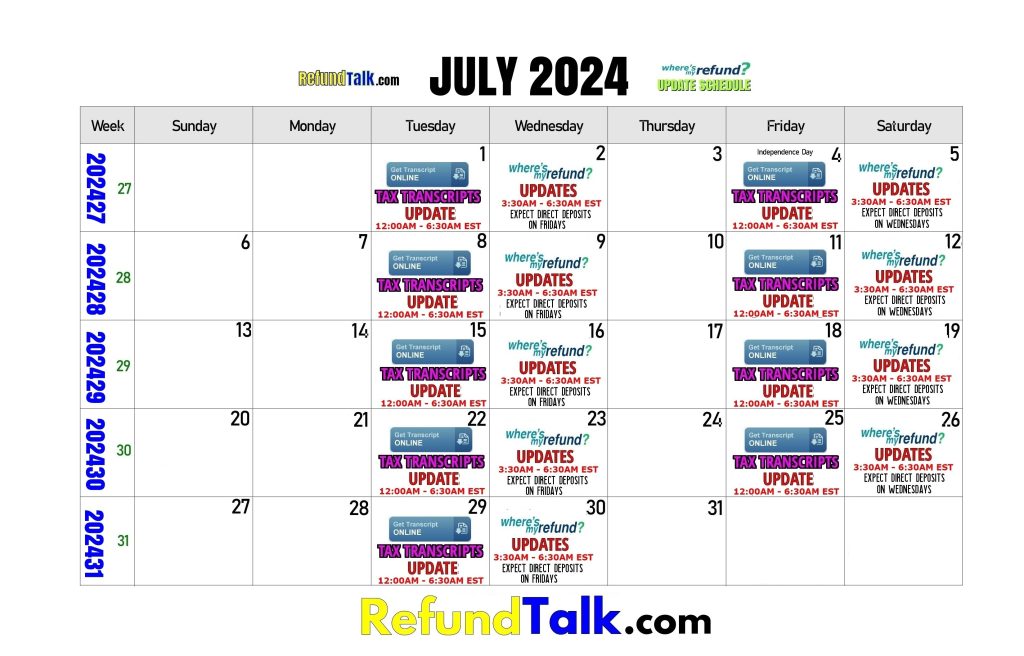 IRS Transcript and Where’s My Refund? Updates Calendars