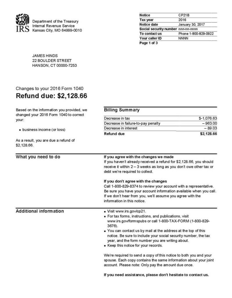 - CP21B Notice (Refund Increase or Decrease)